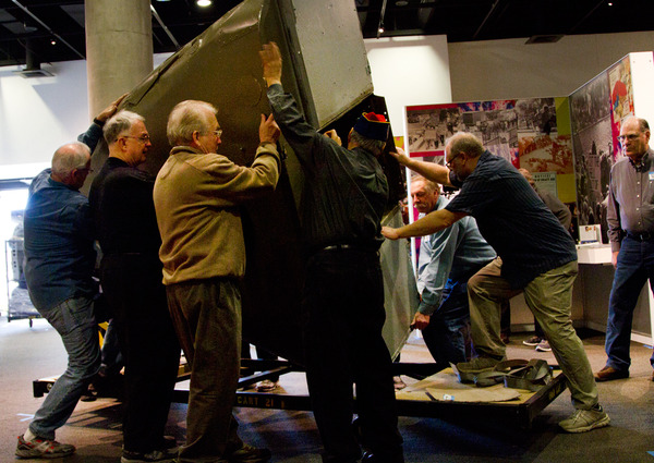 This morning at the History Colorado Museum, Vietnam veterans rebuilt history, piece-by-piece. As part of The 1968 Exhibit, vets were invited to install a Vietnam-era Huey helicopter. The model helicopter was assembled by actual parts that transported troops into battle and rescued injured soldiers during the war. Many of the vets who worked to assemble the installation had first-hand experience with a Huey during the war, either working on it as a mechanic or flying into battle. The time-capsule displays throughout the exhibit offer glimpses into this tumultuous time in American history, including the effects of the Vietnam War on families, the assassinations of public figures, space exploits, and pop culture. Click through the slideshow above to see the team of heroes resurrect the Huey, and see it for yourself when the exhibit opens on February 7.