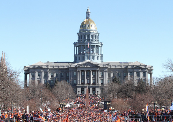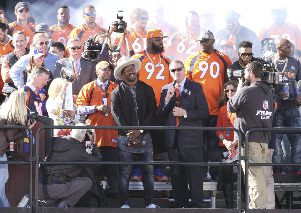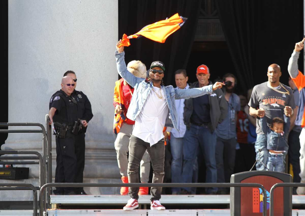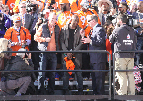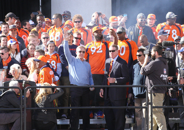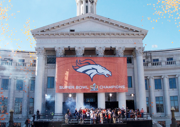 On the steps of the City and County Building, Mayor Michael Hancock—a self-proclaimed lifelong Broncos fan—welcomed the guests of honor as they rolled up to the park, eliciting a roar from the estimated one million fans that could be heard all the way from Union Station.