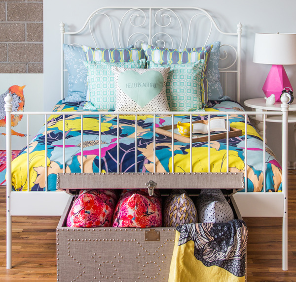The new headquarters on Lawrence will primarily serve as office space for 12 DENY employees and as a studio for photographing products. But the showroom up front is a locals-only perk where Denverites can see and touch items before they order; get inspiration from creative director Lenay Snyder’s ever-changing displays, some of which will soon be sold as full, specially priced sets (see examples of her print-pairing genius in the slideshow above); and even score returned items at deep discounts. Eventually, the Nyhuses hope to offer product pickup on-site as well.