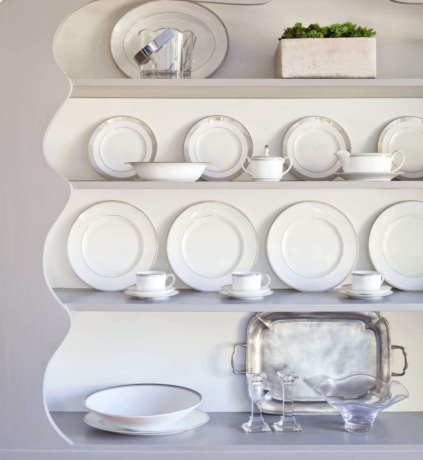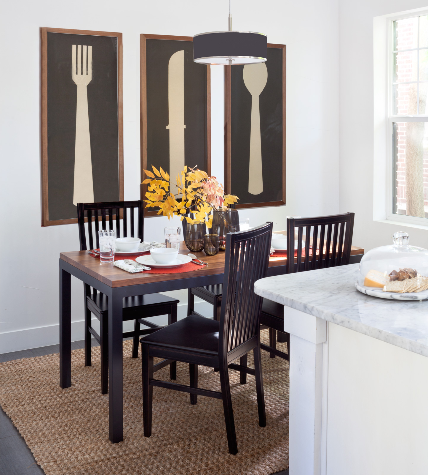 NW: I think you need to have some “negative space”—some blank or empty areas. We didn’t fill every single shelf of the living room bookcase, and on the mantel, we only put one object on the left and a collection of stuff on the right. For the dining room shelves, we kept it clean and neat. To keep a minimal thing going, I would say, don’t overthink it.