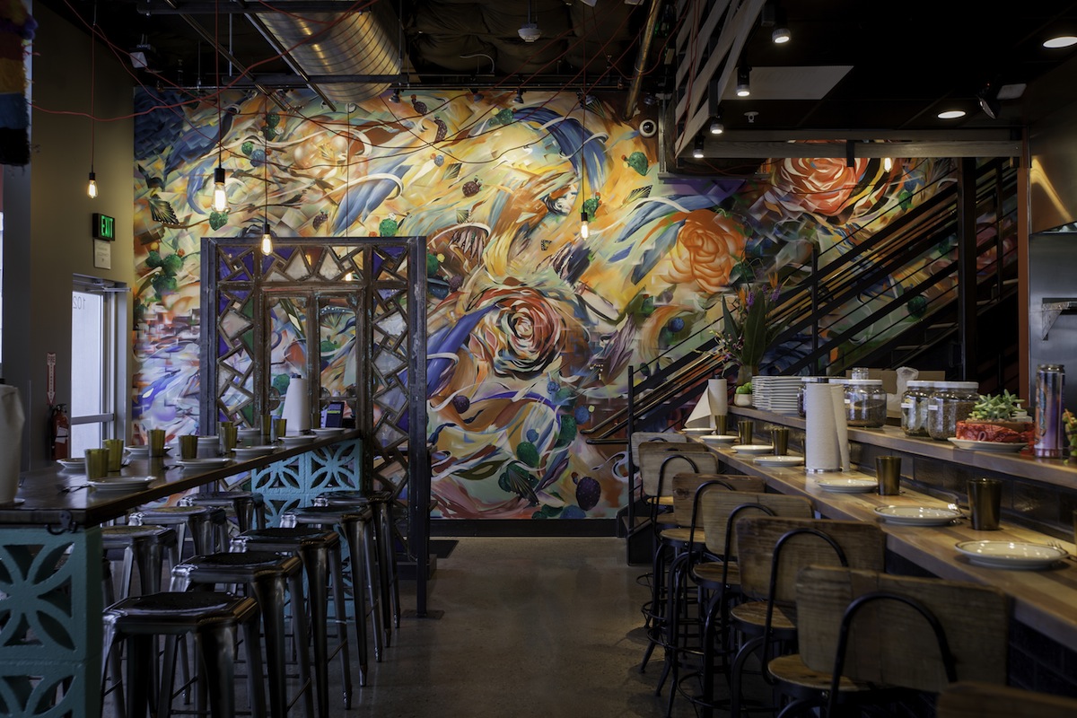 Opened in December 2013, Troy Guard’s airy, hip taqueria features a rooftop deck and bar with city views. Bright shades of orange, turquoise, and red channel Mexican flavor, while tables with cement-block legs and a graffiti-style mural lend a gritty twist well-suited to the emerging neighborhood.