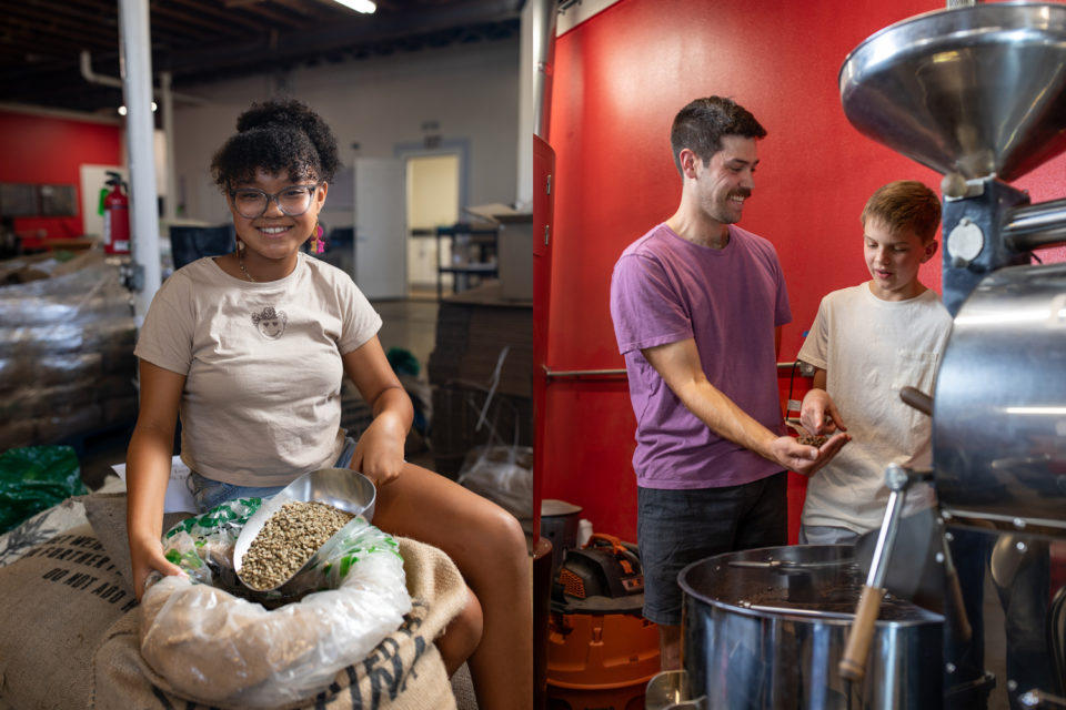 The air was thick and hot from the 1,000-degree roaster, and all the garage-style doors were closed. I walked up to the green, unroasted coffee beans. I scooped the coffee into the bin, walked it over to the roaster, and put it in the hopper. I could see my paper, which was scattered with roasting recipes, measurements, and guidelines shaking in my hand, and I was super nervous. I focused and successfully roasted my coffee. That moment? That’s what learning at Embark feels like. It’s hands-on, exciting, sometimes nerve-wracking—but always rewarding. Embark has shown me that education isn’t just about textbooks and tests; it’s about real-world experiences, like the eighth grade Roasting Apprenticeship that I led, that make learning fun, engaging, and, most importantly, relevant.
