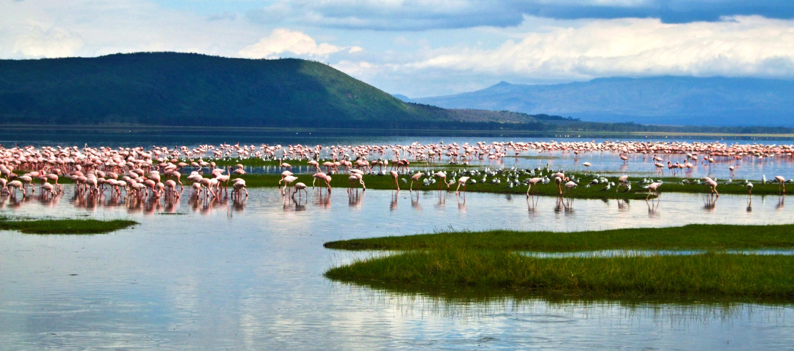 Travel to Lake Nakuru for a one-night stay. Afternoon game drive in a park known for black and white rhinos, flamingos, and diverse birdlife.