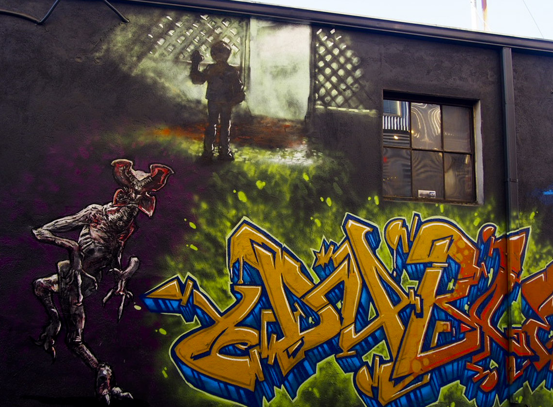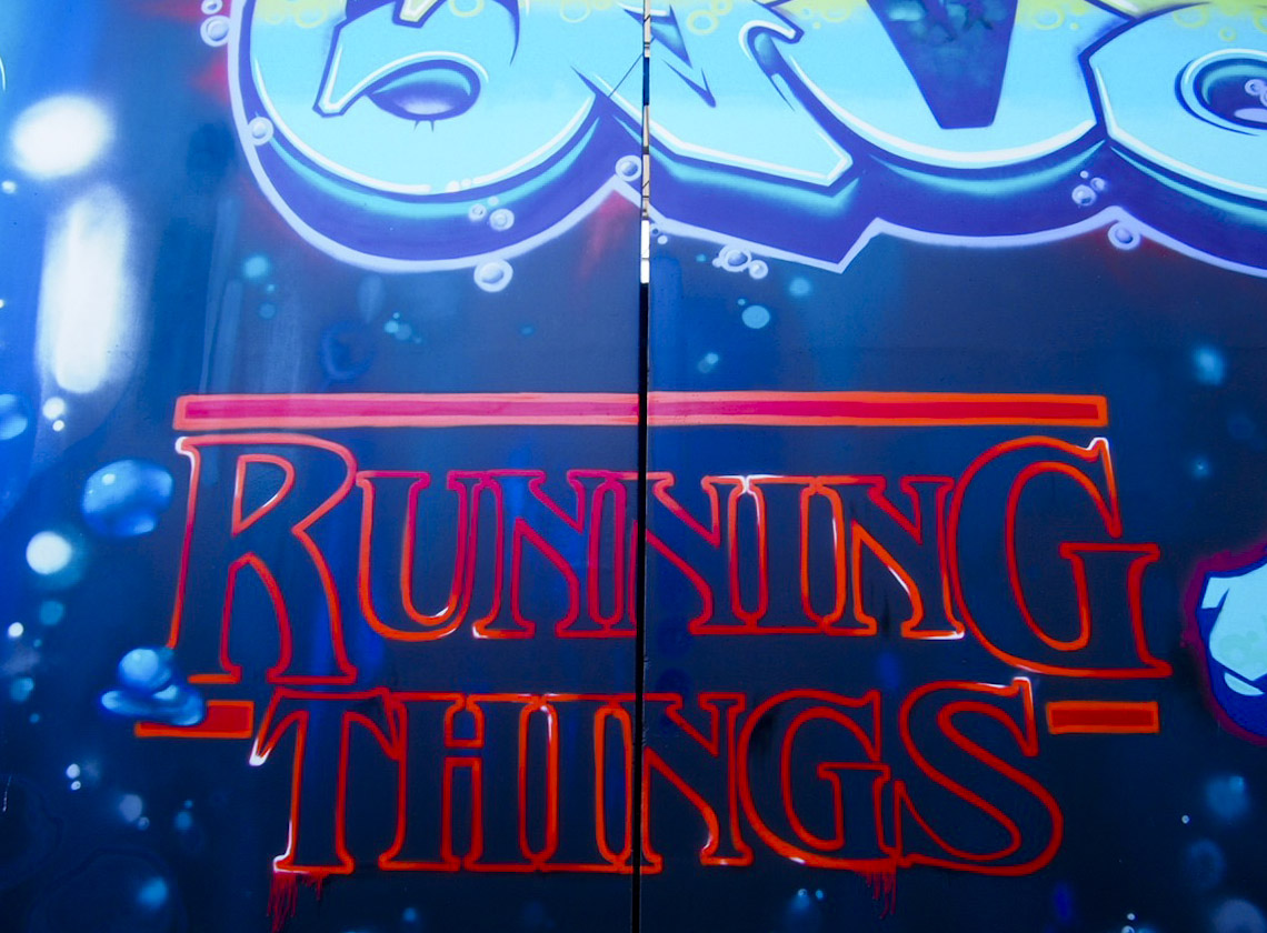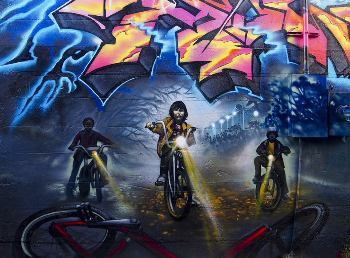 When street artist Jher Seno and members of the Arty Deeds crew started working on an alley-long Stranger Things installation at RiNo’s Colorado Crush street art festival, it didn’t take long for bystanders to recognize their favorite characters. The Netflix show, set in the 1980s, is a sci-fi thriller that follows a group of cute kids (plus one telekinetic girl) searching for missing friends that have disappeared to a paranormal, “upside down” world. It surpassed Making a Murderer as the streaming service’s most popular show and quickly got the green light for a second season, which started production this month.