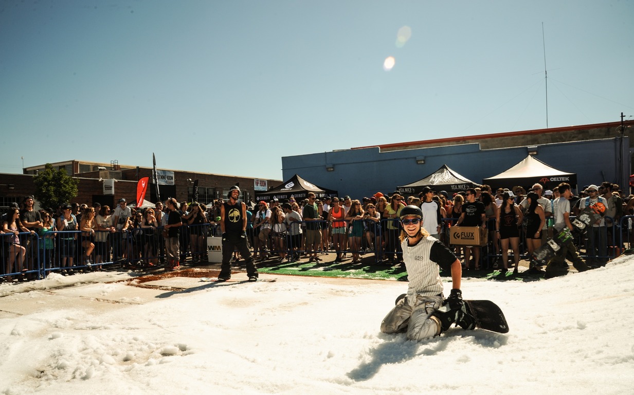 Imagine 80-degree weather, blue skies, warm city pavement—and snow? The 3rd annual Snowboard on the Block festival took place Saturday afternoon in downtown Denver, bringing 25 tons of snow and some friendly competition to the Mile High City.