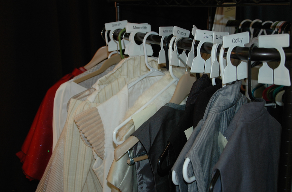 The foundations for 12 dancers’ costumes hang, awaiting adornment. Kras makes all of the costumes herself and has to work on a limited time frame—all the costumes for Winter were sewn, built, and crafted in less than 29 days (normally she has closer to eight weeks)—so she’s discovered so shortcuts and tricks to cut time. For this production, she bought ready-to-wear vests for the male dancers; she’ll tailor and ornament them herself