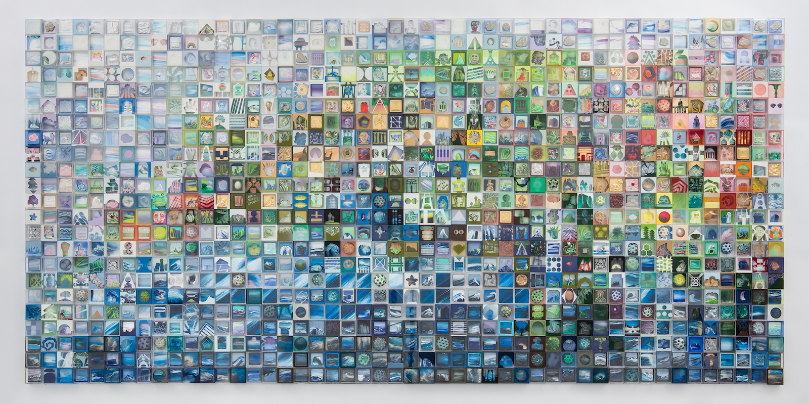 The finished product (and, more specifically, what will happen to it after November 17) explores yet another vision of utopia: “What is possible if we stop striving for self-preservation at all costs, and give all we have to make this world a more generous and beautiful place,” says Saiz, who plans to give away all 10,000 “#WhatisUtopia” artworks—which, combined, took him 150 days to create—at the close of the exhibition.