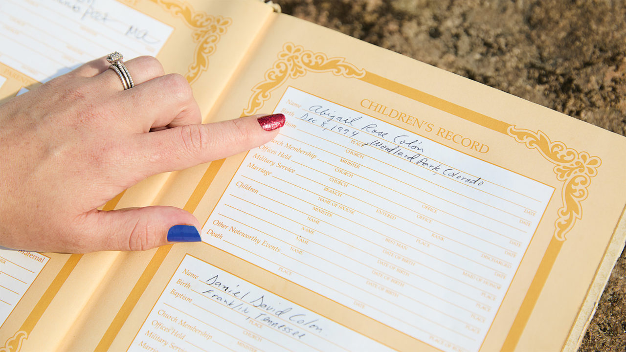 After breakfast we move to a nearby coffeeshop, where Abigail hands Eythan a thick King James Bible. He eases it out of its box. The binding is split, and the edges are worn. “Our Family Bible” is spelled out in gold lettering on its tattered cover. “Be very careful with it,” Abigail tells me. I turn to the third page, where, written in cursive black ink, is the earliest proof of existence for the woman across the table: “Abigail Rose Colón, Dec. 8, 1994, Woodland Park, Colorado.”