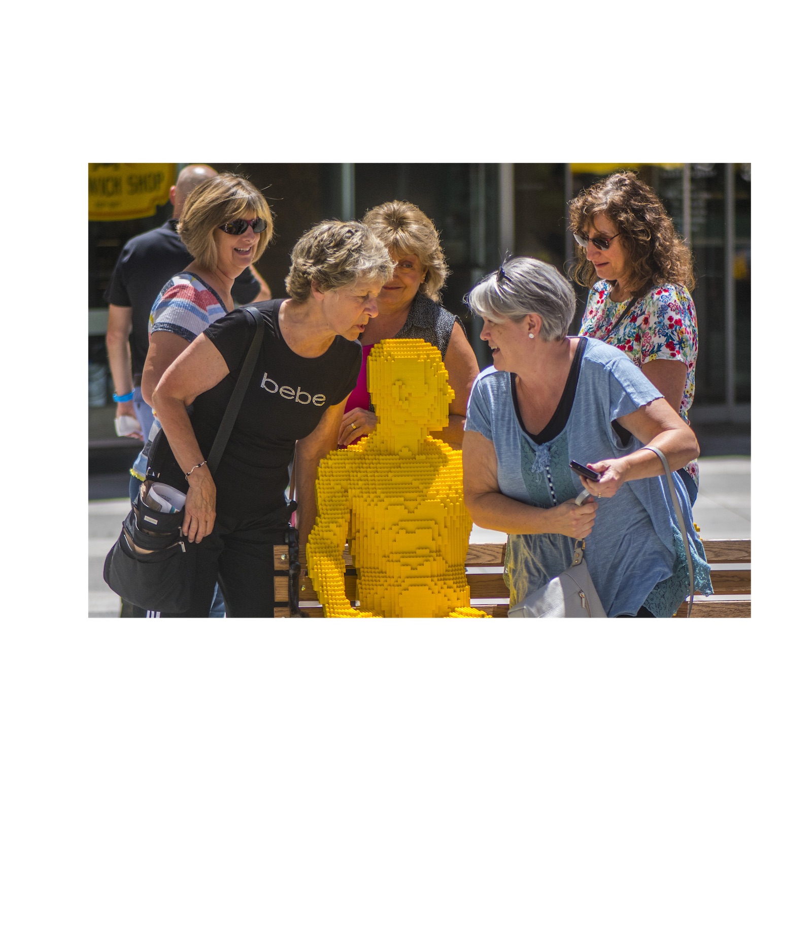 “The art brings in everyone,” says Carol Watson, arts and events manager for Brookfield Properties. “With the Legos, I think it takes us back to our childhood.”