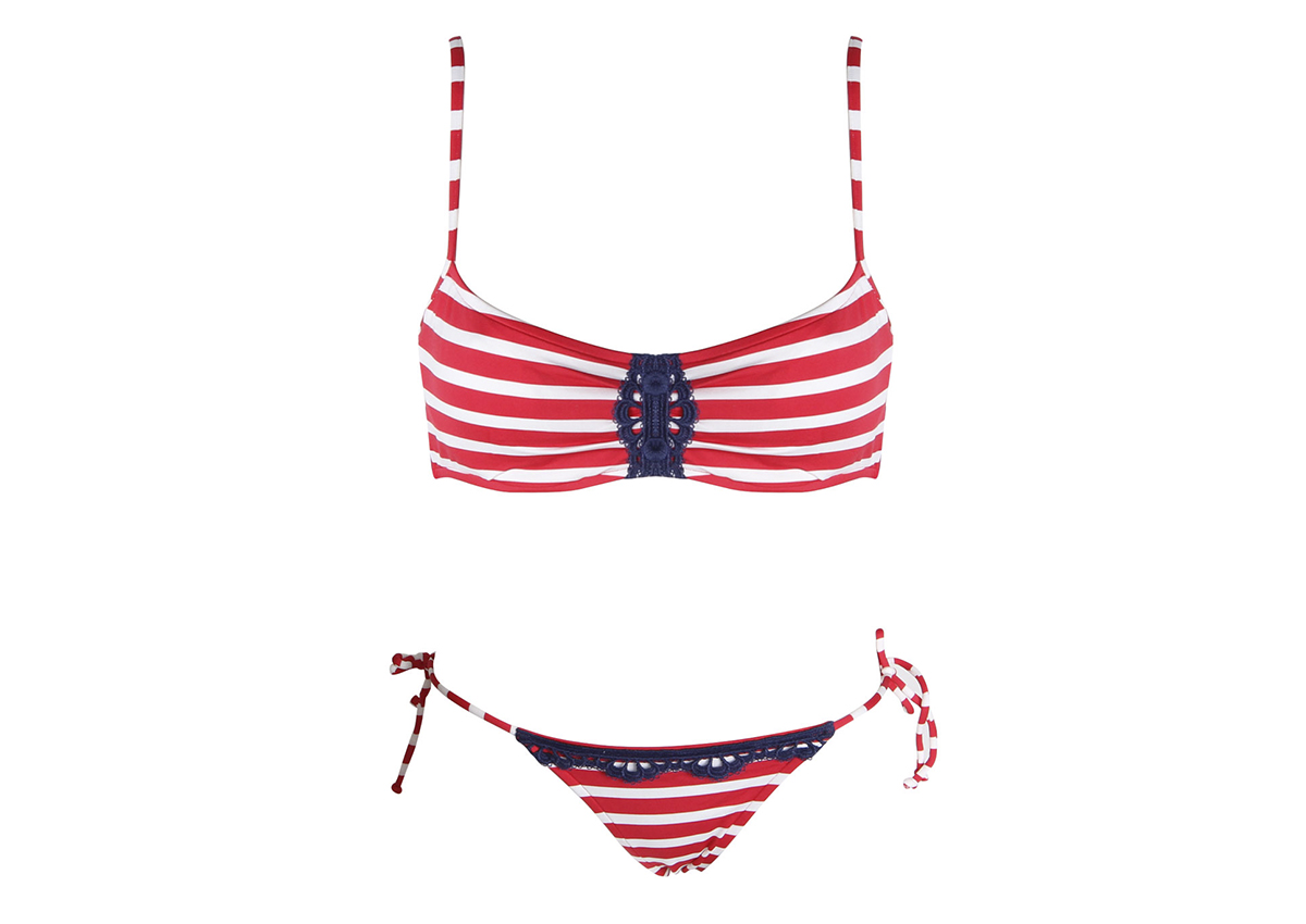 Swimsuit: Sailor stripes are synonymous with summer. For a sexy Latin twist on the nautical look, Spanish designer Andres Sarda cuts his bikini with a balconnet bra–a push-up style that creates flattering cleavage and balances an hourglass shape. Find It: Lily Swim Balconnet Bra, $164, and Lily Swim Side Tie Bikini, $96, SOL, 248 Detroit St., 303-394-1060, SOLlingerie.com