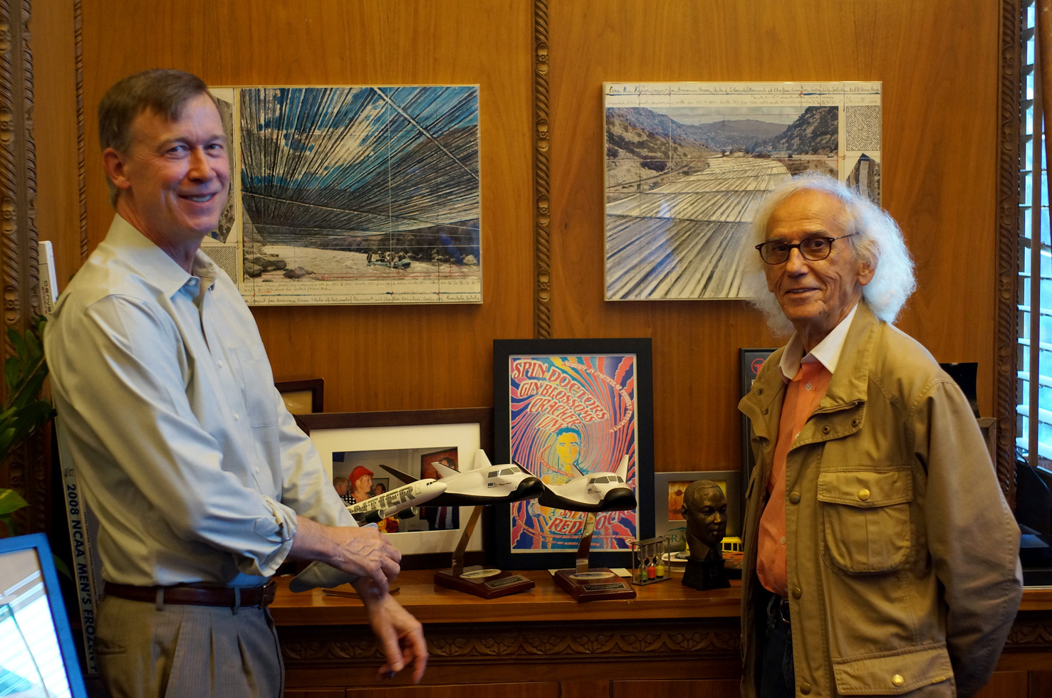Christo (right) met with Governor Hickenlooper while he was in town. (Photo courtesy of Christo, Over the River)
