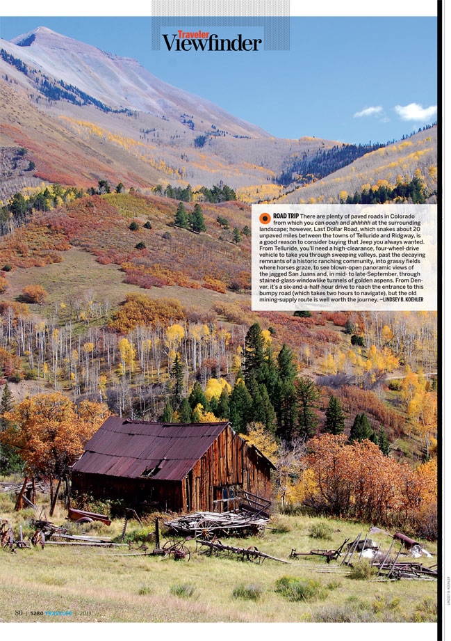 DepartmentViewfinder Lindsey B. King 5280 Traveler 2013 The Local newsletter is your free, daily guide to life in Colorado. For locals, by locals. Sign Up
