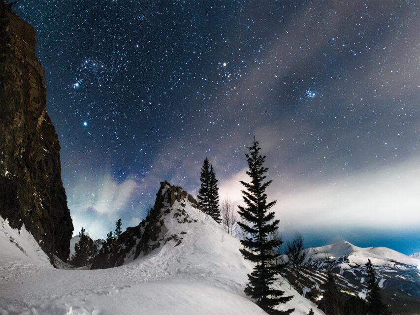 The efforts paid off this August when Breckenridge became the first mountain ski resort town in Colorado to earn Dark Sky Community certification from the Arizona-based nonprofit DarkSky International. This month is a stellar time to give that celestial canvas a gander: Although average nighttime temps hover around 14 degrees, darkness falls earlier and lasts longer, and winter skies tend to hold less moisture, thereby reducing cloud cover and decreasing the atmospheric turbulence that can make stars look hazy. Plus, as this constellation of options demonstrates, Breckenridge shines when the weather chills.
