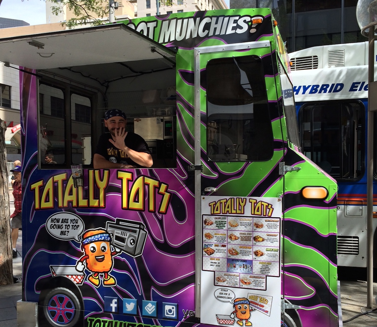 Looks like the Downtown Denver Business Improvement District heard our (and others’) rallying cries. On Friday, August 29, they launched Patio 16, an outdoor dining area in the median of the 16th Street Mall between California and Stout streets. Outfitted with yellow and white tables and chairs from IKEA, the spot is split into two different sections, with six locally owned food vendors—Totally Tots, Gigi’s Cupcakes, Sons of Scullery (barbecue), Wikipita (Mediterranean), Pretzel Street, and Denver Brats & Dogs—lining the areas between and beside. Order some food and grab a seat, or bring your own snacks from a nearby establishment. Because it operates under a food court permit, Patio 16 doesn’t allow smoking or pets. Two concierges walk the area, answering questions, greeting diners, and cleaning tables. Trash bins are easily located, and two recycling bins are on order. “There are 115,000 employees and 65,000 residents downtown,” says Cord Rauba, 16th Street Marketplace manager. “We need these spaces.”