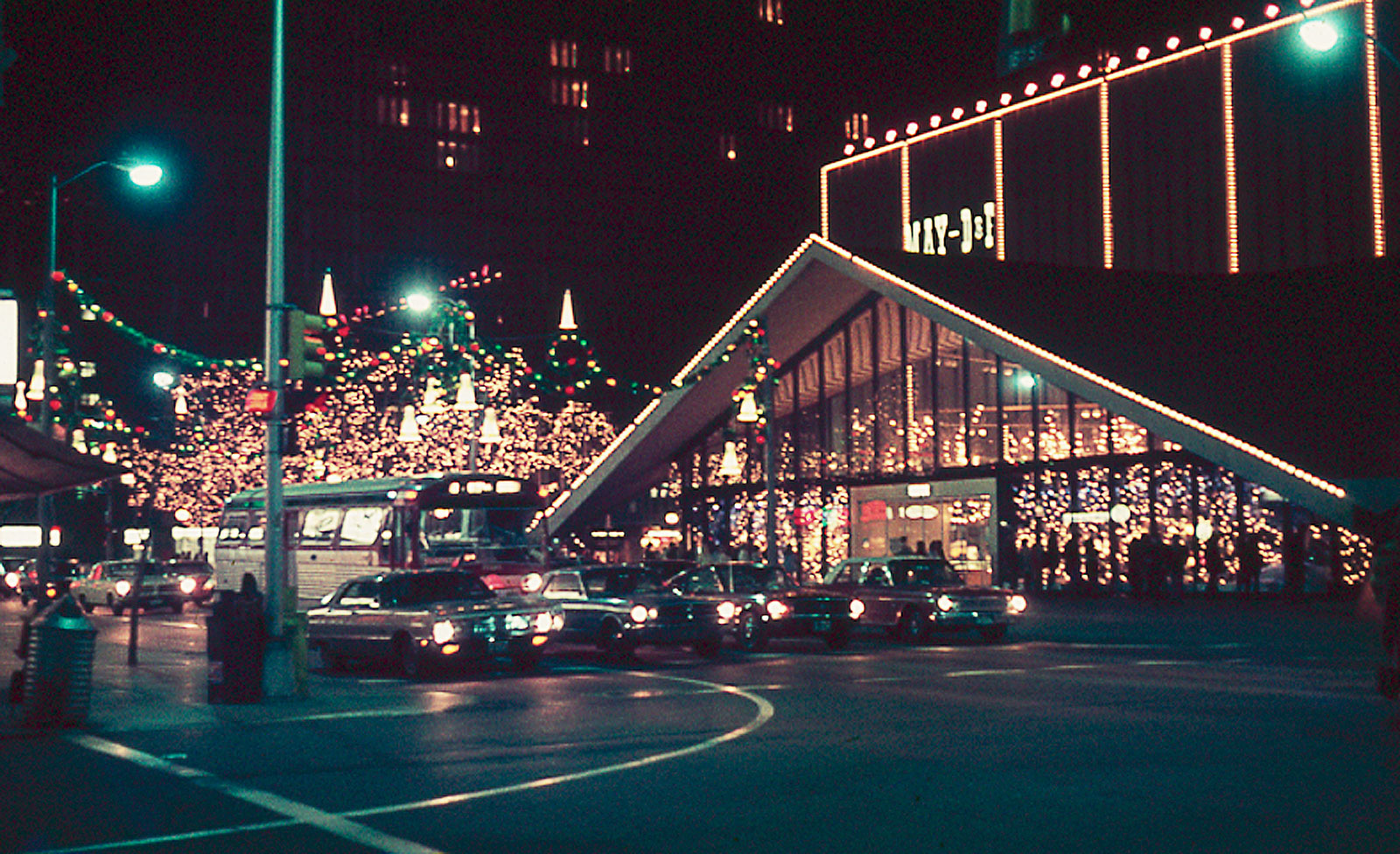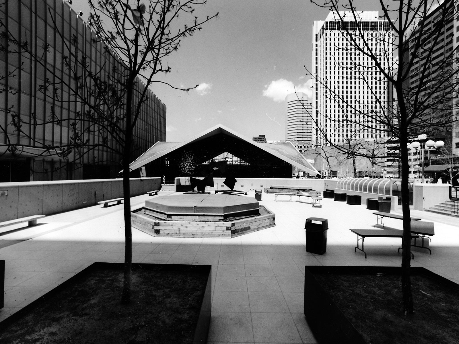 When Zeckendorf Plaza opened, officials touted it as the the Mile High City’s answer to Rockefeller Center. There, the Denver Hilton Hotel opened to a plaza with an ice skating rink, fountains, and the May D&F department store. A pyramidal structure, known as the hyperbolic paraboloid, tied the elements together, serving as a focal point and an alluring entrance to the store.