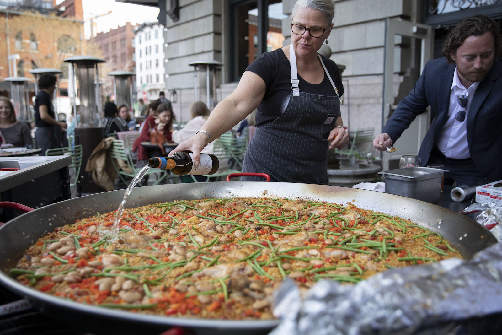 A dish that conveys such a strong sense of place is difficult, if not impossible, to recreate beyond Spanish borders (although countless cooks, myself included, have tried). Recently, Ultreia, the Iberian-inspired restaurant inside Union Station, endeavored to do so, offering “paella on the patio” during the Saturday morning Union Station Farmers Market. Cooked outside over a gas flame, Ultreia’s massive paella is an eye-catching spectacle; you can enjoy a $10 plate from a patio table or take one to-go to nosh on as you shop.