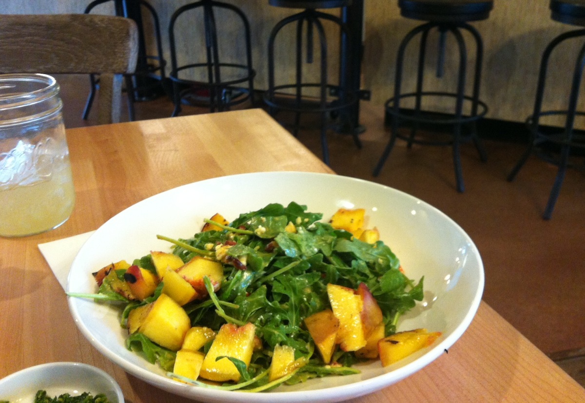 Before fall officially calls it quits, head in for the Farmers Market Salad (pictured, above), a fresh blend of arugula, grilled Munson Farms peaches, toasted pecans, smoked Haystack Mountain goat cheese, and sherry-peach vinaigrette. Wash it down with a glass of house-made honey-ginger limeade. For something more filling, order the free-range chicken (pictured, left) with pesto and your choice of two deli counter items (I suggest the Mediterranean salad and daily flatbread). Just make sure to save room for the brownie. Gluten-free desserts are often overly dry and dense, but not this one. Sweetened with honey, the thin morsel has a rich chocolate flavor without becoming saccharine.